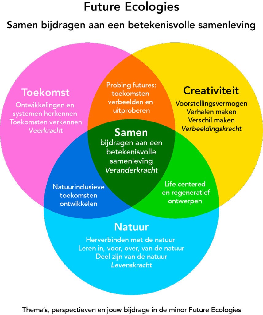 Wil jij bijdragen aan positieve verandering en meewerken aan een hoopvolle en leefbare toekomst? In de minor Future Ecologies verkennen we samen toekomsten waarin mens en natuur meer in balans zijn. Je leert met een open blik naar de wereld te kijken en vernieuwend te denken, en ontwikkelt de skills om verhalen en beelden te creëren die verandering tastbaar, voelbaar én bespreekbaar maken.