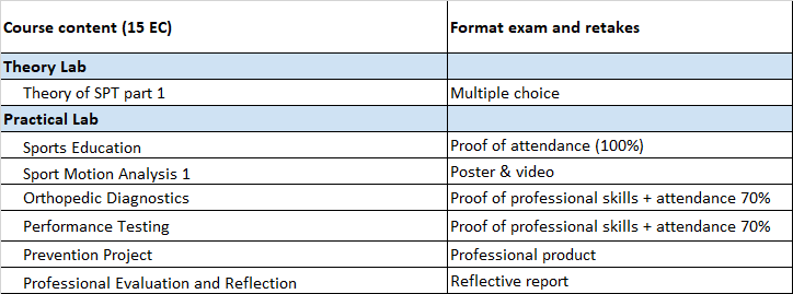 Each exam can be taken twice during the semester this module runs. This means means you have one take and one retake within the semester. If you fail a retake, you can take that exam again next school year. Some retakes will be planned at the end of module 2 Applied Sport Physiotherapy.
